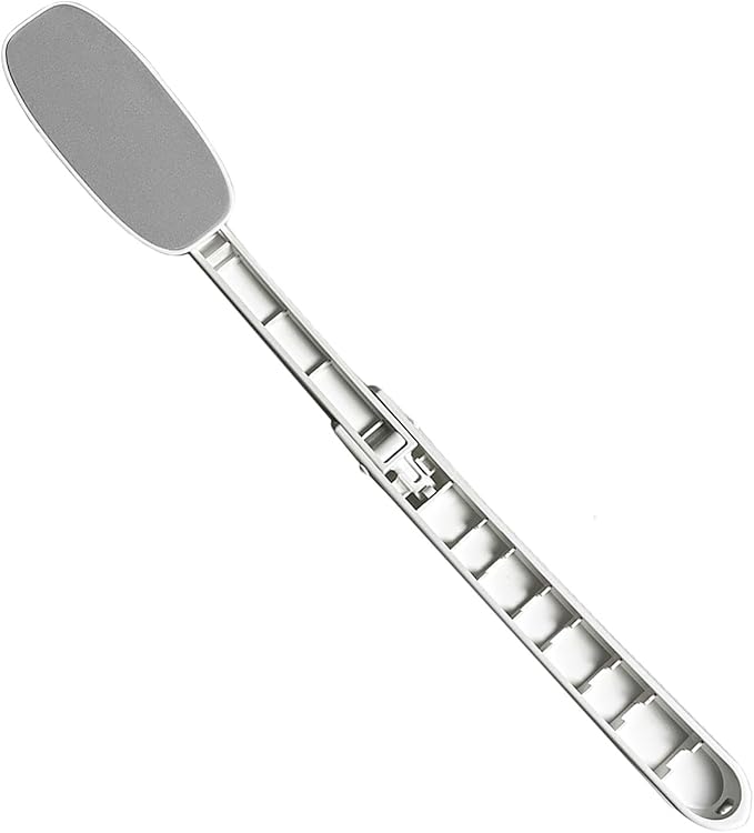 Ausilio progettato per aiutare persone con mobilità o manualità ridotte a vestirsi in modo più semplice. È dotato di un gancio a un’estremità per abbottonare e un gancio a forma di ‘C’ all’altra estremità per chiudere le zip.