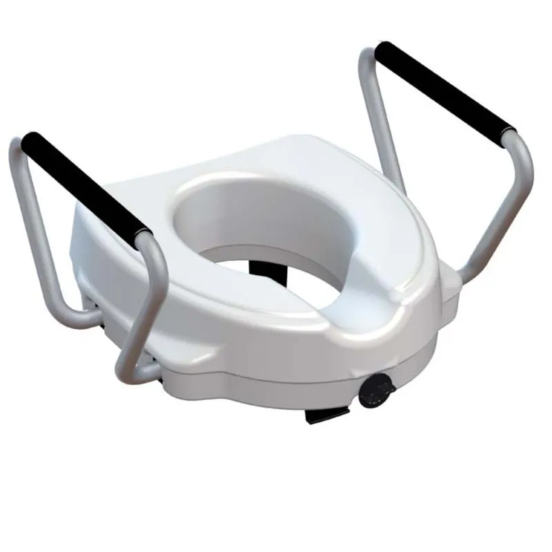 Sostegno utile per sedersi e alzarsi dal WC. Adattabile a ogni tipo di sanitario, con altezza regolabile e puntali in gomma antiscivolo.